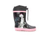 Otroški gumijasti škornji so odlična izbira za deževne dni, saj so izdelani iz vodoodpornega materiala, ki ščiti stopala pred vlago. Notranjost je obložena z mehkim vložkom in tanko filc podlogo, kar zagotavlja dodatno udobje in toploto. Nedrseč podplat omogoča varen korak, hitro zategovalna vezalka na vrhu pa preprečuje vdor vode in omogoča prilagoditev širine odprtine. So lahki in prožni, popolni za igro na prostem.