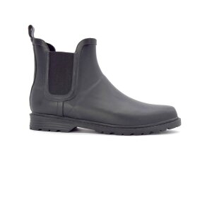 Elegantni gumijasti škornji so popolni za deževne dni, pa tudi za sprehode po mestu. Zahvaljujoč elastičnim stranskim vložkom in zanki na zadnjem delu jih je enostavno obuti in sezuti. Profiliran podplat zagotavlja dober oprijem in stabilen korak na mokrih površinah. Klasičen dizajn v kombinaciji z mat zaključkom jih naredi popolno izbiro za vsak slog – od sproščenega do urbanega.