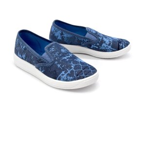 Lahki platneni športni copati s čvrstim in lahko upogljivim podplatom. V zgornji del jezika je všita elastična guma, ki omogoča ultra hitro obuvanje in sezuvanje. Zgornji del se zlahka stisne, tako da gredo brez težav v šolsko torbo, podplat pa je iz materiala, ki na parketu ne pušča sledi, zato te copate veliko otrok uporablja pri pouku športne vzgoje. Odlično razmerje med ceno in kvaliteto .